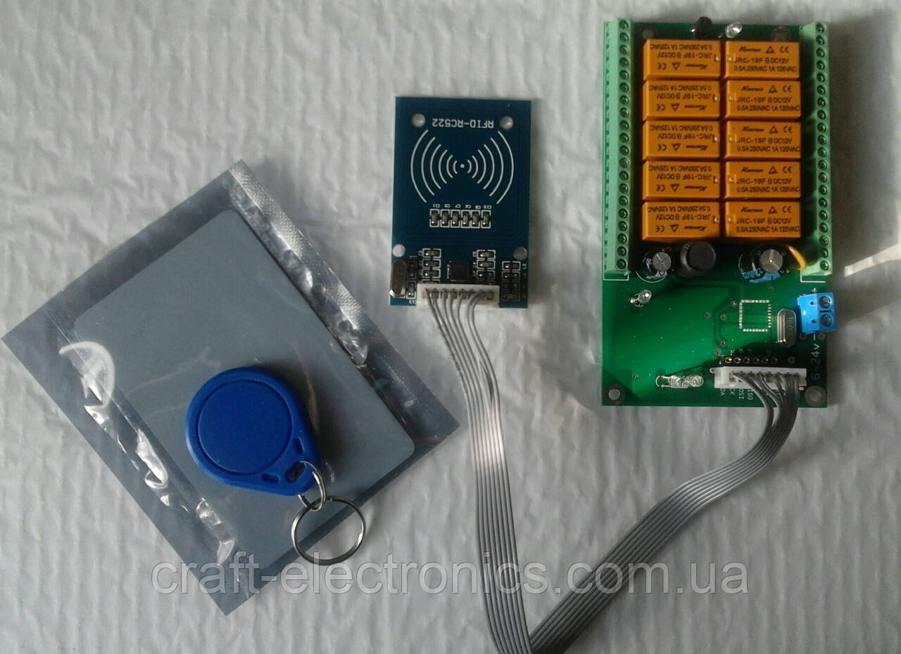 Модуль забезпечує контроль доступу до кабіни ліфта. Він зчитує код з електронного ключа (брелока або картки MIFARE) і виконує дозвіл управління від кнопок наказів ліфта. . Зручна диспетчеризація через бездротовий зв'язок Bluetooth. Можливість тимчасово блокувати, додавати і видаляти абонентів, здійснюється через додаток на базі Android.